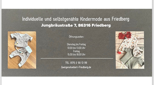 Im Zwergenstüberl Friedberg werden in einer kleinen Nähwerkstatt wunderschöne Einzelteile mit Liebe von Hand genäht! Wir verwenden ausschließlich Materialien aus biologischer und Ökotex Herstellung! Bereits seit 2014 besteht unser kleiner Laden in der Friedberger Altstadt!